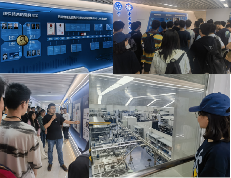 中国科学院物理研究所的钟诗阳副研究员和王进光副研究员为同学们做了精彩的介绍。他们为同学们详细介绍了超快激光的发展历史,近年来的相关诺贝尔物理学奖以及物理所在阿秒和强激光方面的发展历程。并带领同学们参观了带有VR的展览走廊、观看了阿秒激光束线、强激光装置及强场实验靶室等。参观过程中,同学们纷纷表示对阿秒激光和强激光装置产生了浓厚的兴趣。他们与物理所的老师们进行了深入的交流,就激光技术的最新发展趋势、应用前景以及未来发展方向等问题进行了热烈的讨论。