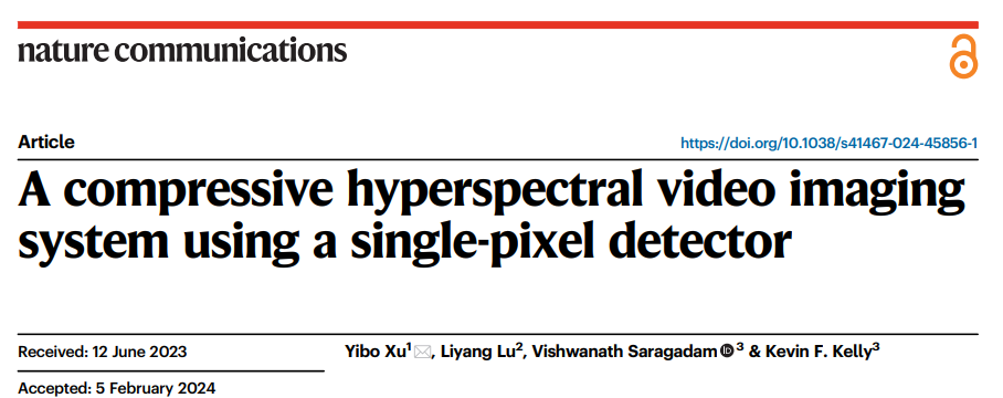 原文信息:Xu, Y., Lu, L., Saragadam, V. et al. A compressive hyperspectral video imaging system using a single-pixel detector. Nat Commun 15, 1456 (2024). http://doi.org/10.1038/s41467-024-45856-1