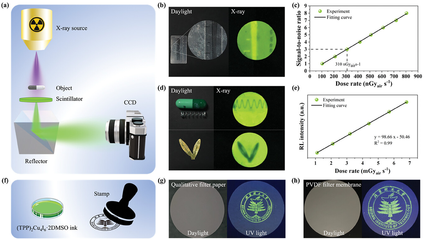 图5. 基于(TPP)2Cu4I6·2DMSO制备的闪烁体及荧光墨水