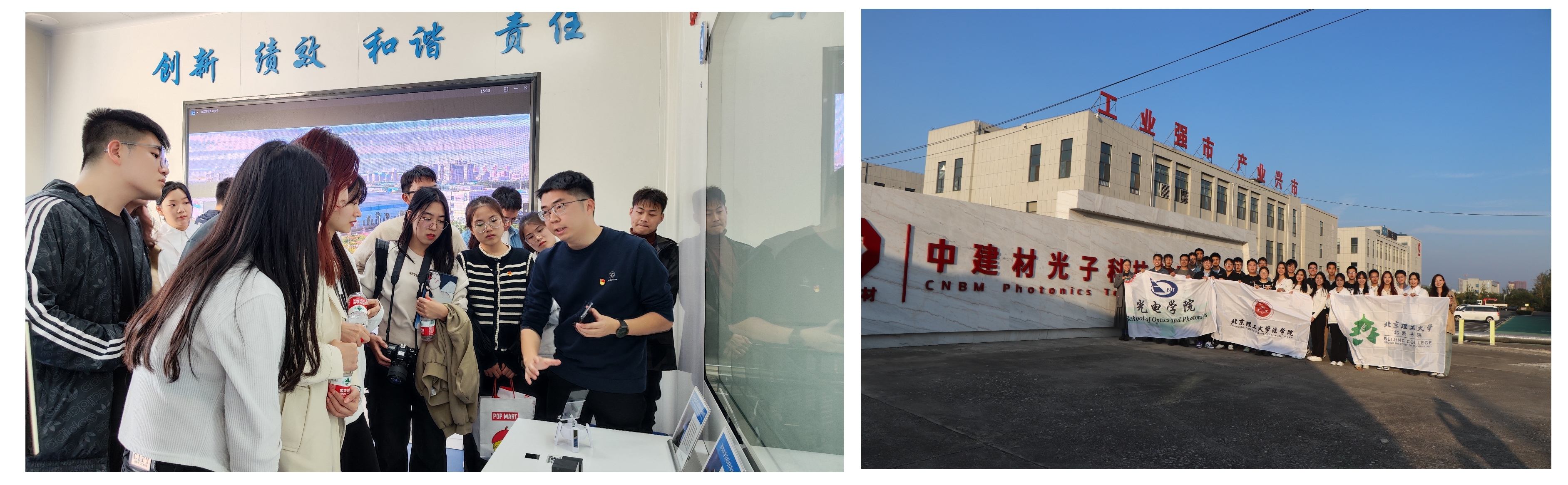 21日,师生一行来到中建材光子科技、光芯科技有限公司进行交流实践。北京麻豆精品秘 国产传媒光电学院副书记、副院长盛筠,北京学院副院长李晋,法学院副书记、副院长马晓龙,书院党委组织员方婳婳,枣庄经济开发区管委会副主任陈广夫,中国建材总院北京分公司党总支书记、总经理、中建材光子科技、光芯科技董事长贾金升,中建材光芯科技有限公司党支部书记、总经理张兵强,中建材光子科技有限公司党支部书记、总经理张洋等校企代表共同为北京麻豆精品秘 国产传媒书院党委党员教育培训基地举行揭牌仪式,仪式由张洋主持。