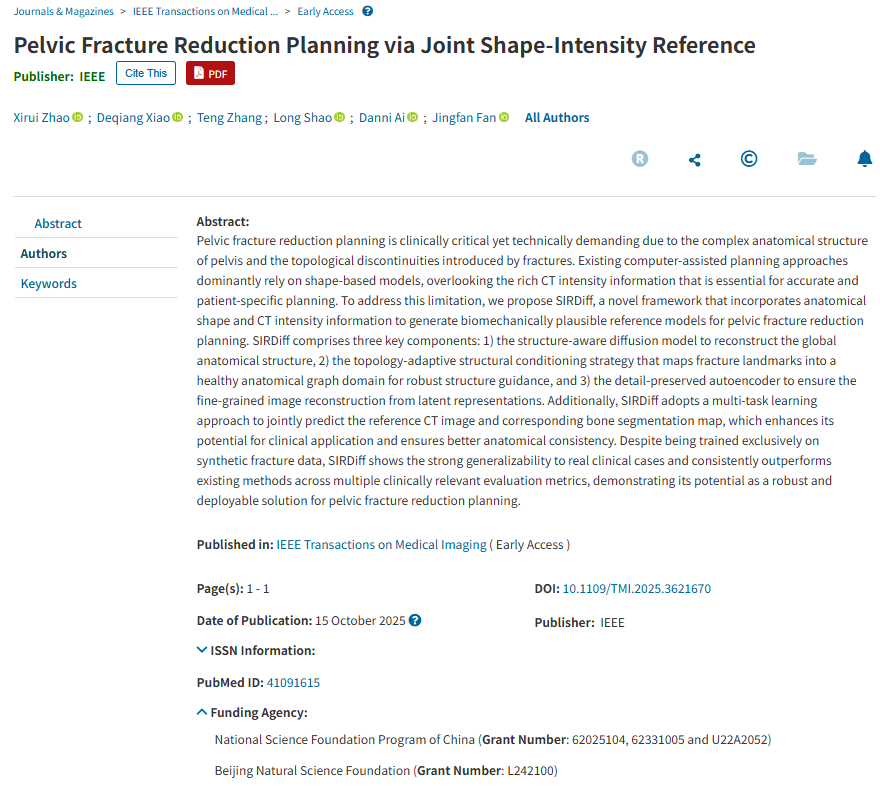 2025-10-23 北理工光电学院杨健教授、王涌天教授课题组在骨折复位手术智能规划方面取得新突...